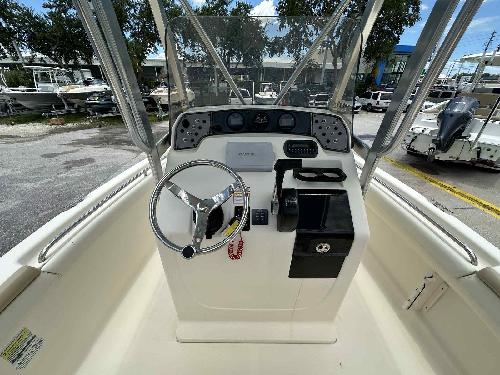 Equipped with a Garmin GPS/fishfinder flush-mounted in the helm, a T-top for added shade, and a stereo system, this 210 XSF is ready for fun-filled days on the water. With ample seating in the bow and aft, along with generous storage compartments throughout, the layout offers both comfort and practicality.