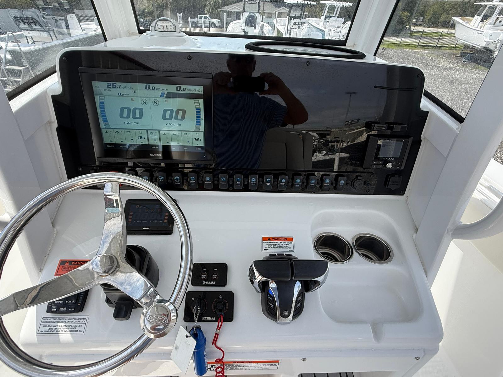 The Sea Hunt 27 Gamefish FS is loaded with features that enhance both its functionality and comfort. The center console design maximizes deck space, allowing for easy movement around the boat and providing unobstructed access to all areas. This layout is perfect for anglers who need room to cast and maneuver, as well as for families who appreciate open, social spaces.Special features of the 27 Gamefish FS include a thoughtfully designed helm with intuitive controls, comfortable seating arrangements, and ample storage for gear and supplies. The boat’s construction reflects Sea Hunt’s commitment to quality, with durable materials and attention to detail evident throughout. The spacious deck is ideal for fishing, sunbathing, or simply relaxing with friends and family. The twin engines are not only powerful but also fuel-efficient, helping you make the most of every trip without worrying about excessive fuel costs.