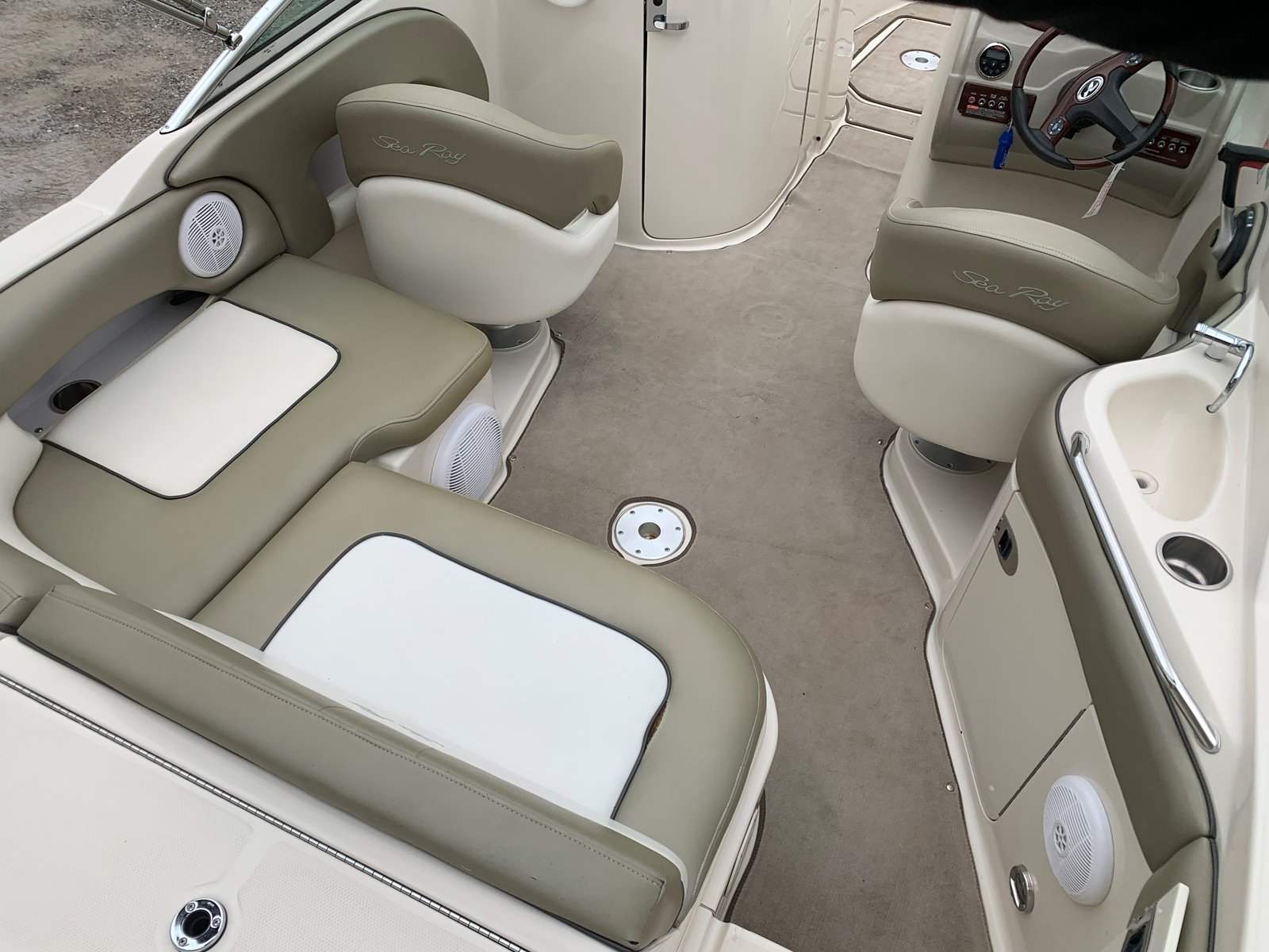 This Sea Ray is powered by a 5.0L V8 engine and Bravo Three drive that moves this boat at exhilarating speeds.