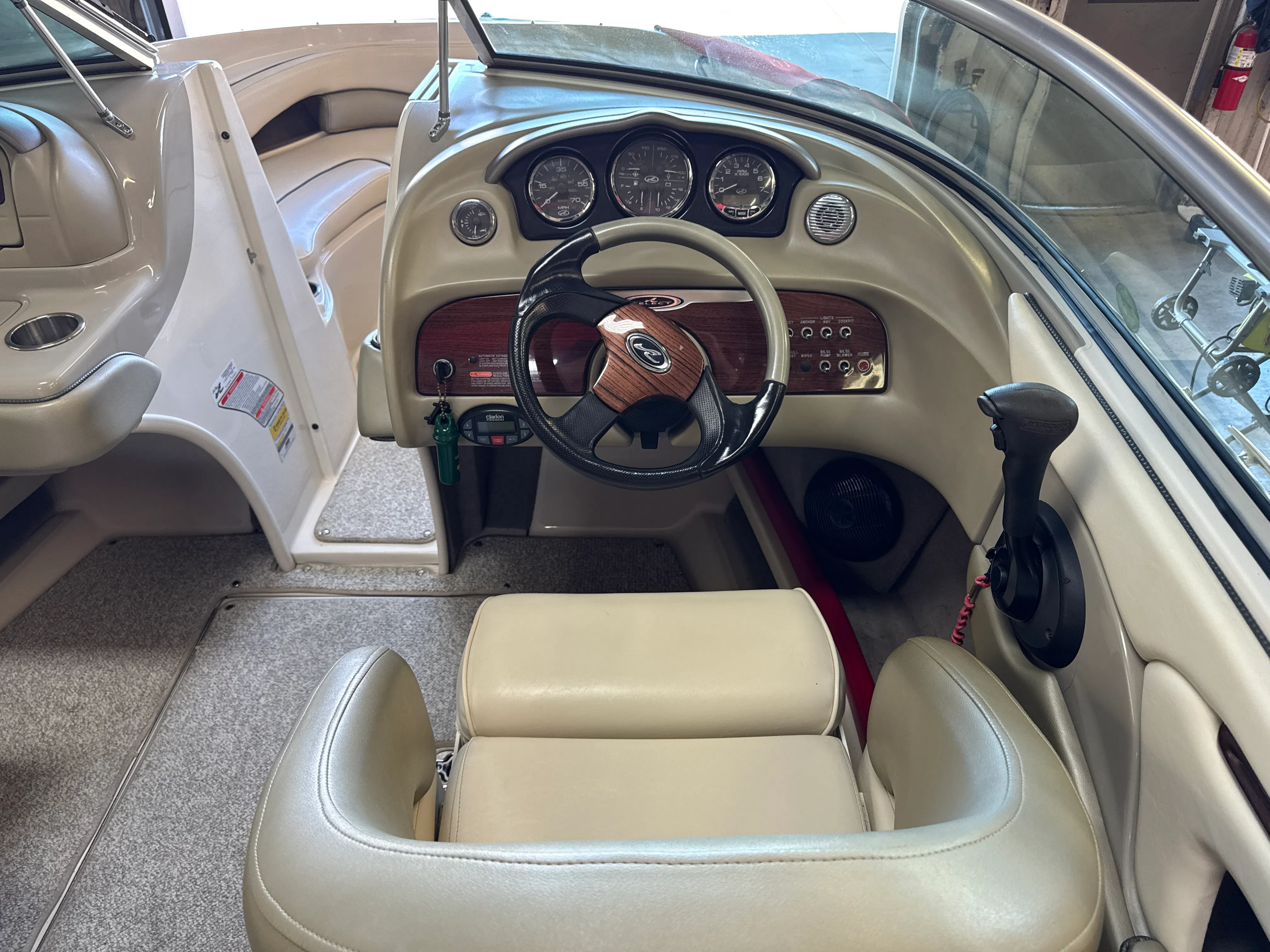 Powering this Sea Ray boat for sale is a robust single engine delivering 220 horsepower, with 599 engine hours logged. This setup provides a smooth and responsive ride, whether you are cruising along the shoreline, towing water toys, or simply enjoying a leisurely day on the lake. The 220-horsepower engine ensures you have the power needed for a variety of activities, from spirited runs across open water to gentle, fuel-efficient cruising. The engine’s proven reliability and performance make this pontoon boat a standout choice for those who value both excitement and dependability.