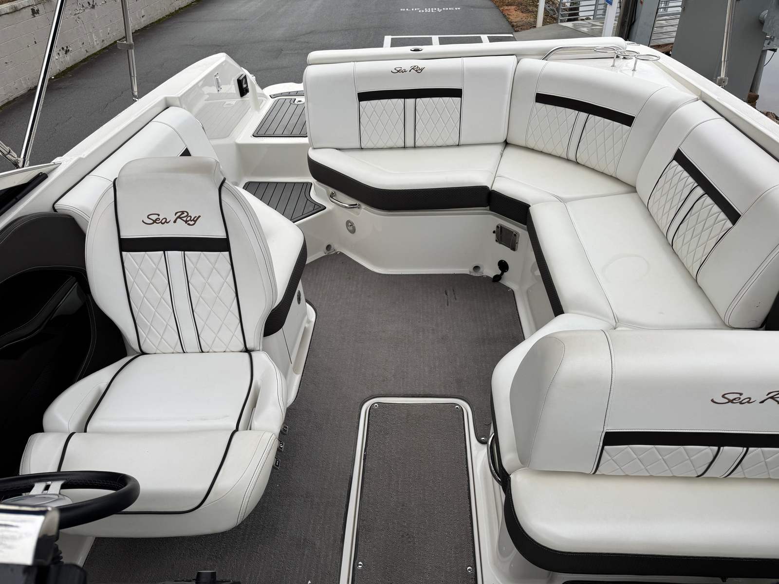 This Sea Ray SLX 230 is loaded with features that enhance both comfort and functionality. The bowrider layout provides spacious seating in the bow and cockpit areas, allowing guests to stretch out and enjoy the ride. The ergonomic helm is designed for ease of use, giving the captain full control and excellent visibility. Premium upholstery and high-quality materials throughout the boat create an inviting atmosphere, while the thoughtful design ensures that every inch of space is utilized efficiently.The SLX 230’s hull design contributes to a smooth, dry ride, even in choppy conditions. The integrated swim platform makes it easy to access the water for swimming or water sports, while the deep bow seating area is perfect for lounging and socializing. Storage compartments are strategically placed to keep gear organized and out of the way, so you can focus on having fun. The overall fit and finish of this Sea Ray boat for sale reflect the brand’s commitment to excellence and attention to detail.