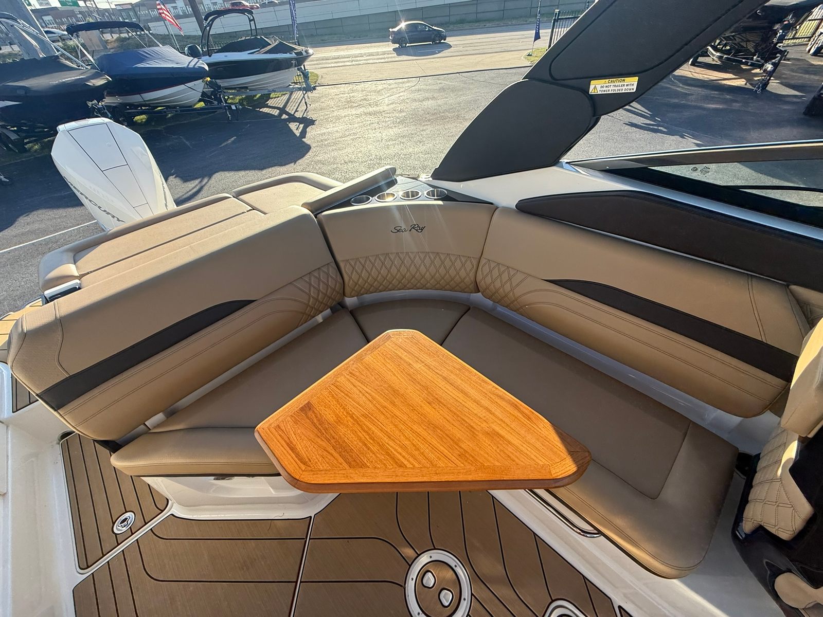 At the heart of this Bowrider is a single engine delivering an impressive 300 horsepower. With only 31 hours of use, the engine offers robust performance and longevity, giving you confidence for countless adventures ahead. The SLX 260’s power ensures smooth acceleration, responsive handling, and the ability to cruise effortlessly across lakes, rivers, or coastal waters. Whether you’re towing water toys, enjoying high-speed runs, or leisurely exploring scenic routes, this Sea Ray boat for sale provides the performance you need for every occasion.