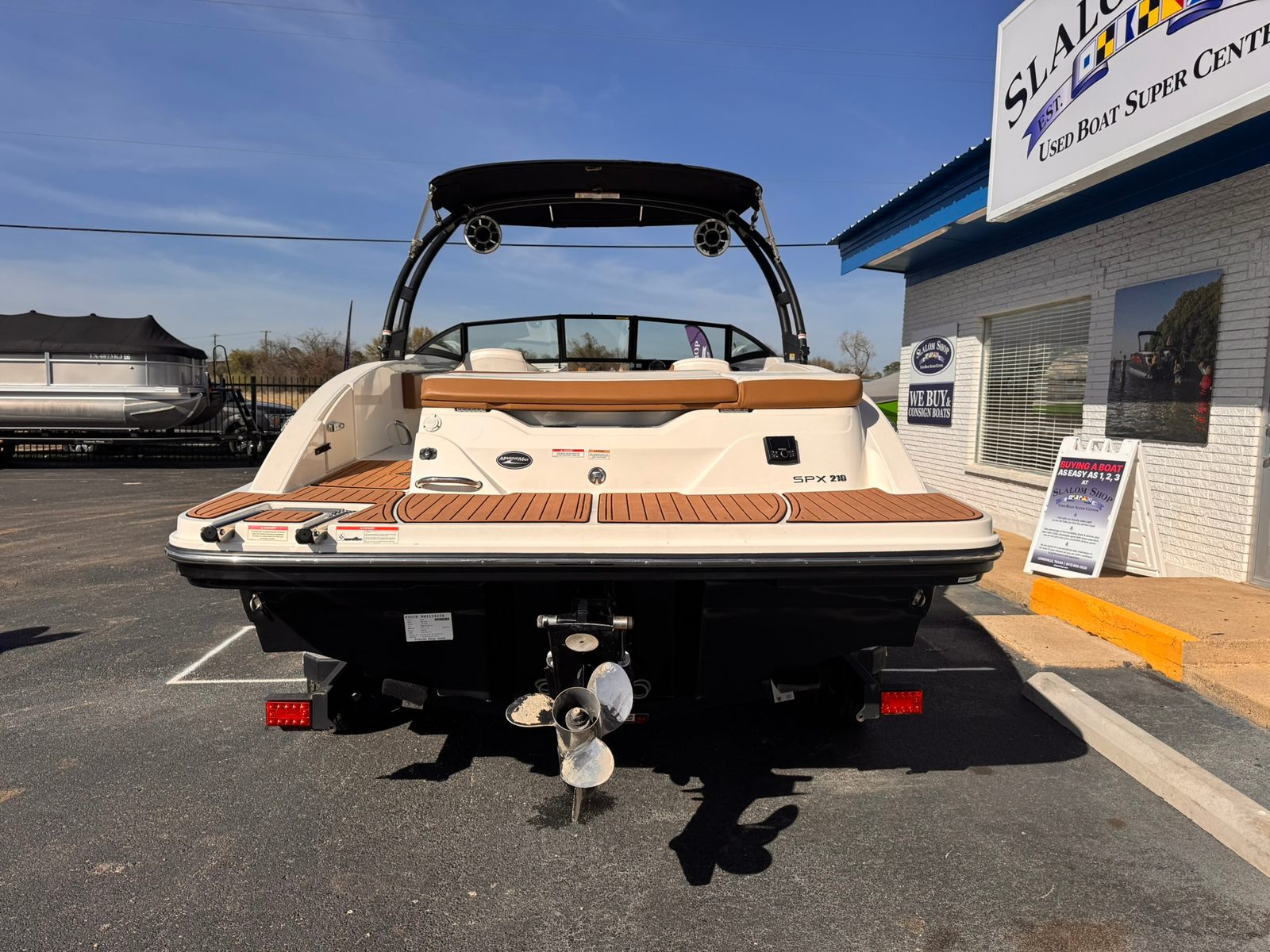 Now available at our Used Boat Super Center in Lewisville, this 2018 Sea Ray SPX 210 is a clean, well-equipped sport boat designed for family cruising, watersports, and relaxing days on the lake. Finished in a sleek black and white gelcoat with a white and tan interior, this SPX 210 is powered by a MerCruiser 4.5L engine producing 250 horsepower with the convenient Quick Drain system and only 88 hours of use.