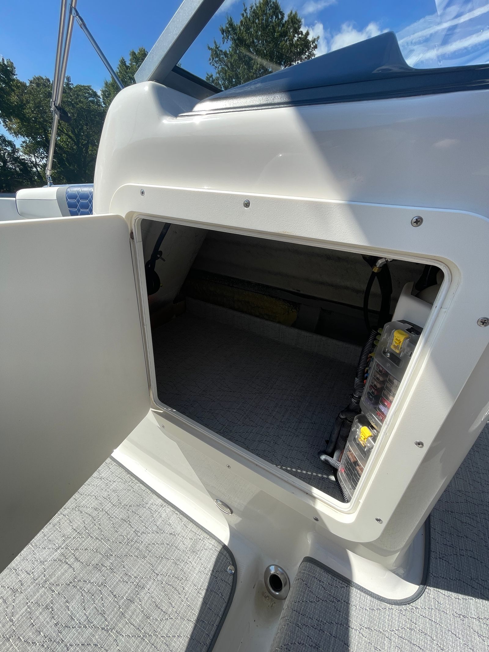 Powering the Splendor 259 Sunstar is a single engine boasting an impressive 300 horsepower. With only 30 engine hours, this deckboat offers reliable and efficient performance, ensuring you can cruise, explore, and play with confidence. The robust engine delivers smooth acceleration and responsive handling, making it easy to navigate both open waters and tight marina spaces. Whether you’re towing water toys, heading out for a day of fishing, or simply enjoying a leisurely cruise, the Splendor 259 Sunstar’s performance capabilities will exceed your expectations.