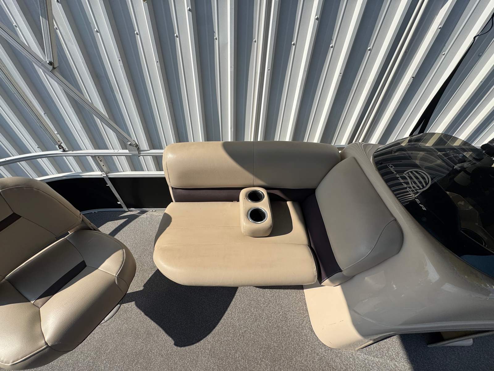 The 2017 Sun Tracker Fishin Barge 20 DLX is designed with both anglers and families in mind. Its spacious deck layout provides plenty of room to move around, making it easy to cast a line or simply relax in comfort. The pontoon’s thoughtful design includes multiple seating areas, ensuring everyone on board has a comfortable spot to enjoy the ride. With its 20-foot length, this boat offers a stable and secure platform, perfect for fishing, sunbathing, or socializing.