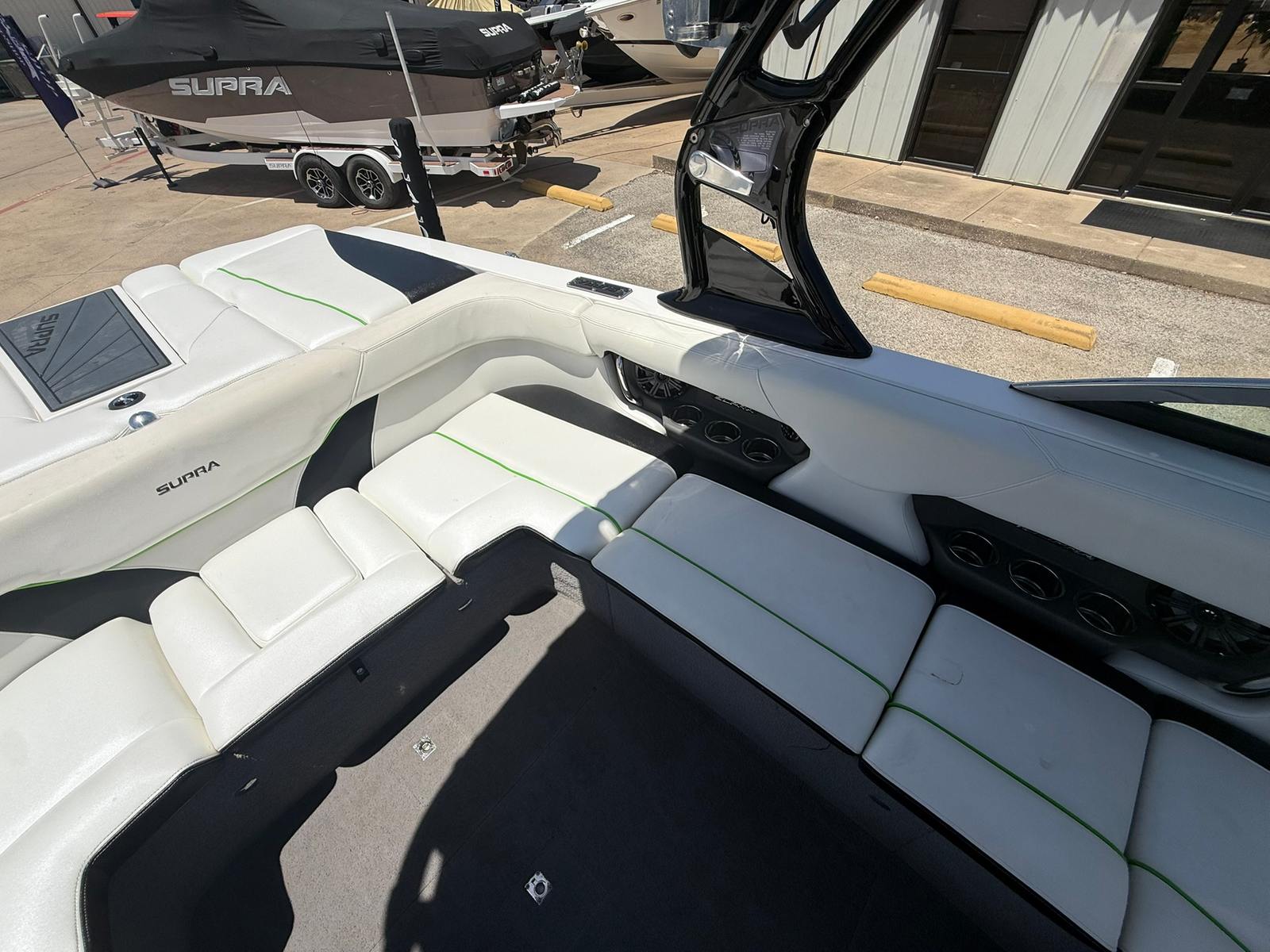This Supra boat for sale truly shines in a variety of scenarios. It’s the perfect choice for families looking to create lasting memories, with plenty of space for kids, friends, and all your water toys. Water sports enthusiasts will appreciate the boat’s wake-shaping capabilities and powerful engine, making it ideal for skiing, wakeboarding, and tubing. The Supra 22 SSV is also a great option for those who love to entertain, offering a comfortable and stylish setting for socializing on the water. Whether you’re chasing the perfect wake, enjoying a leisurely cruise, or hosting a lakeside picnic, this boat is ready for any adventure.