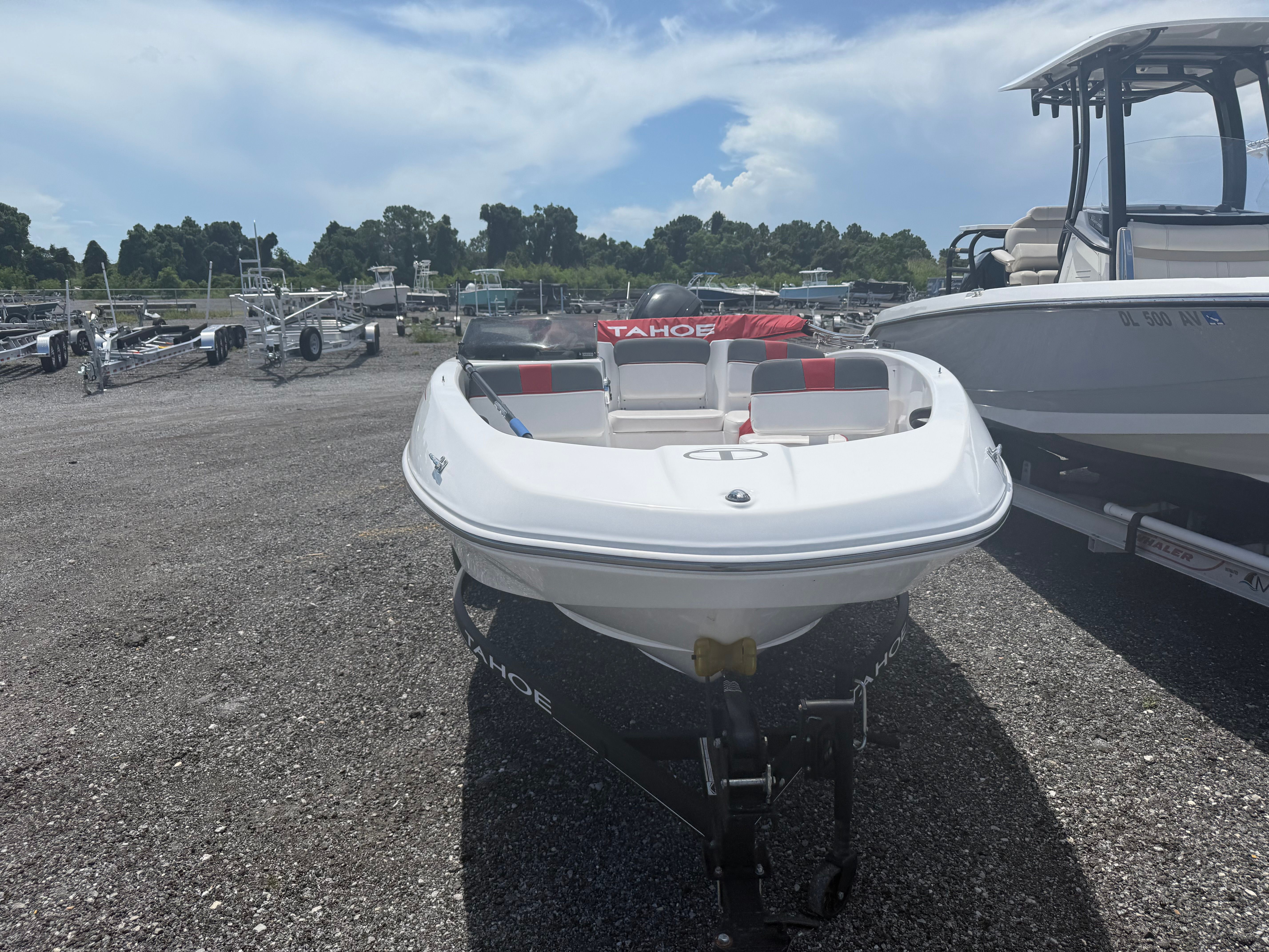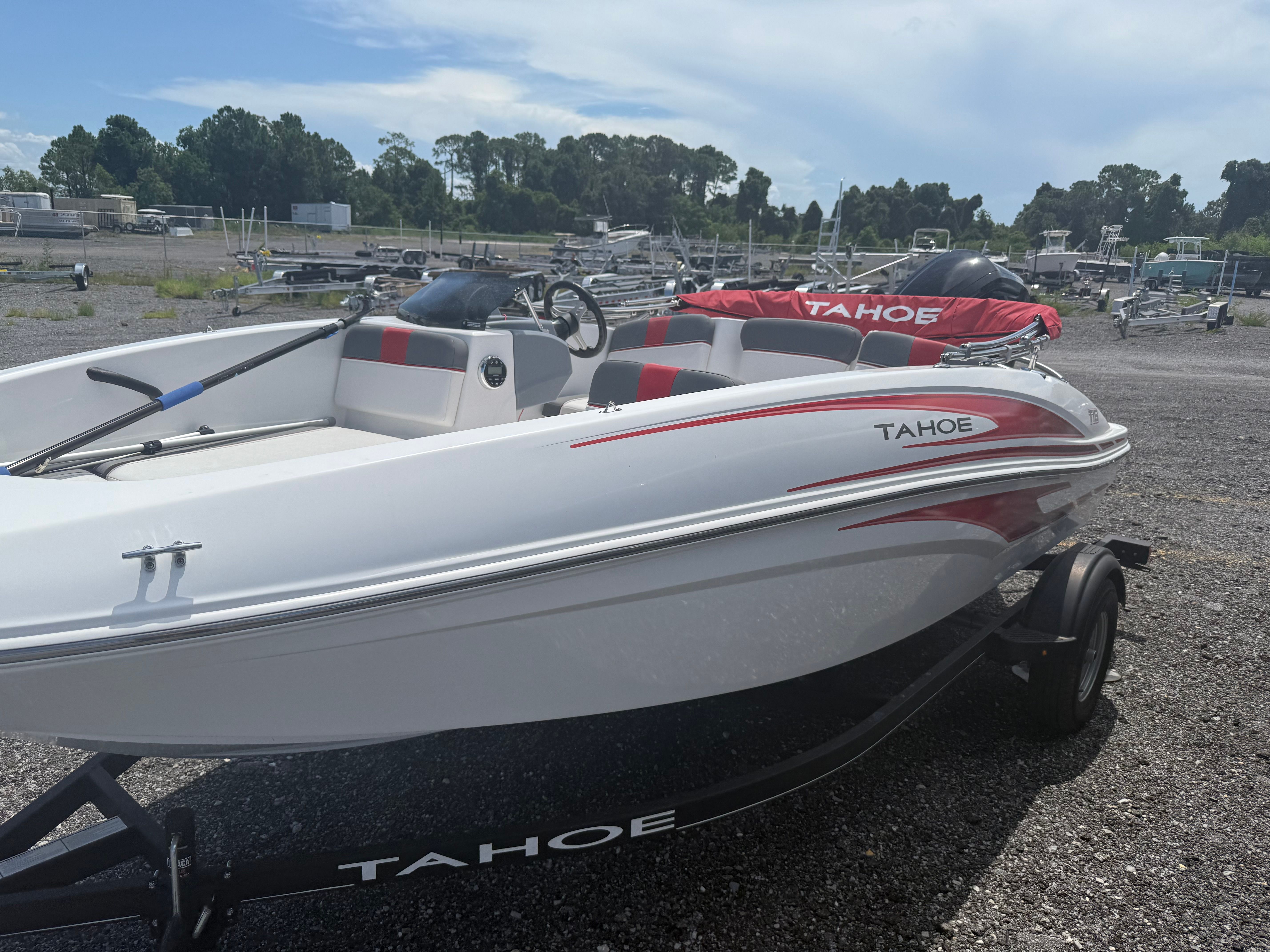 The Tahoe T16 pontoon is thoughtfully designed to enhance your time on the water. Its 16-foot length offers a comfortable and stable platform for a variety of activities, from sunbathing to socializing. The open deck layout provides plenty of space for passengers to move about freely, while the plush seating ensures everyone can relax in comfort. The pontoon’s durable construction and quality materials reflect Tahoe’s commitment to craftsmanship and longevity.This used pontoon boat for sale is equipped with features that make every outing enjoyable. The intuitive helm station puts you in complete control, while the easy-to-read gauges keep you informed at a glance. The sturdy railings and non-slip flooring add an extra layer of safety, so you can focus on fun and relaxation. With its modern design and attention to detail, the Tahoe T16 is as stylish as it is functional.