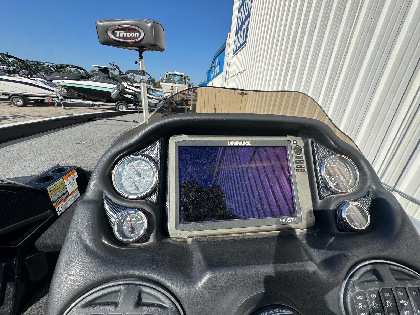 This Triton boat for sale is equipped with a range of special features designed to enhance your fishing experience and make every outing more enjoyable. The tandem axle trailer provides easy transport and stability, ensuring your boat is secure whether you’re on the road or at the ramp. The Hot Foot throttle system offers hands-free acceleration, giving you greater control and comfort during high-speed runs.For anglers who demand the latest in fishing technology, the Lowrance Active Target and Lowrance Electronics Package deliver unparalleled sonar and navigation capabilities. These advanced systems help you locate fish with precision and monitor underwater conditions in real time. The Lowrance Ghost Trolling Motor offers quiet, efficient propulsion, allowing you to maneuver stealthily and maintain your position without disturbing the fish.Additional features include a Power Pole for quick and secure anchoring, and an Atlas Jack Plate for optimal engine height adjustment. These enhancements contribute to the boat’s versatility and make it easier to adapt to changing conditions on the water.