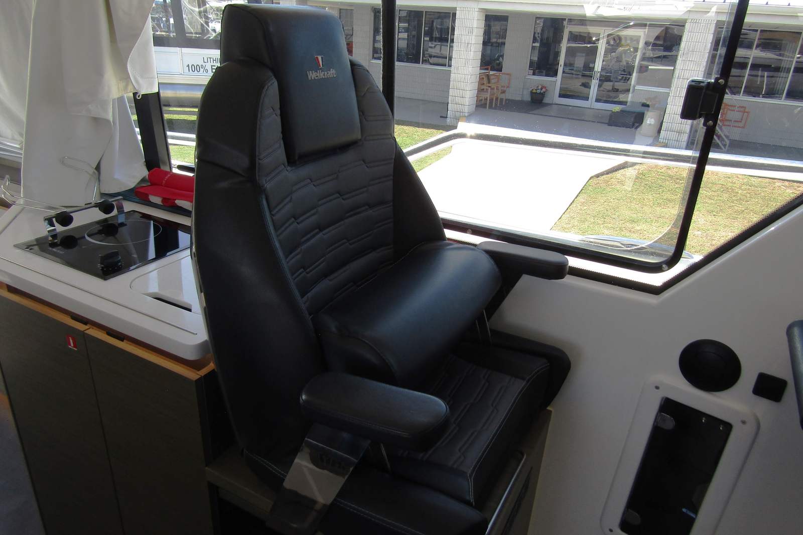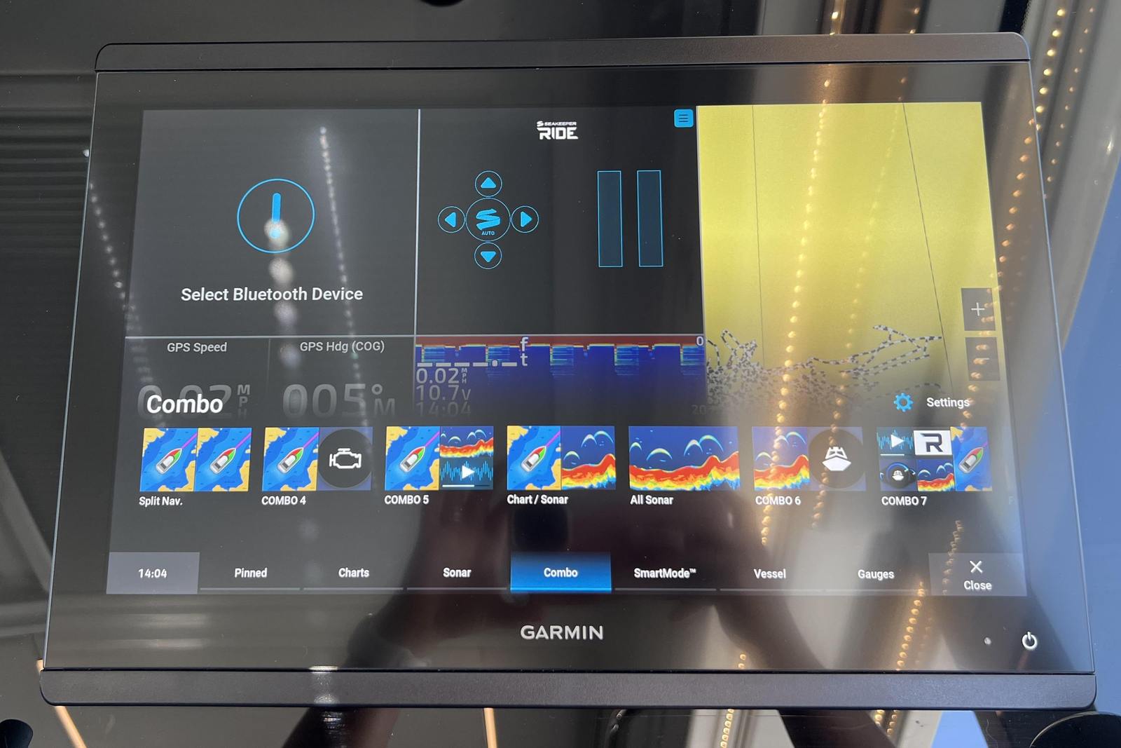 Inside, the spacious cabin is equipped for extended stays with a galley, private head/shower, comfortable berth, and premium finishes throughout. The advanced helm features dual Garmin displays, joystick control, and full digital integration for a seamless boating experience.