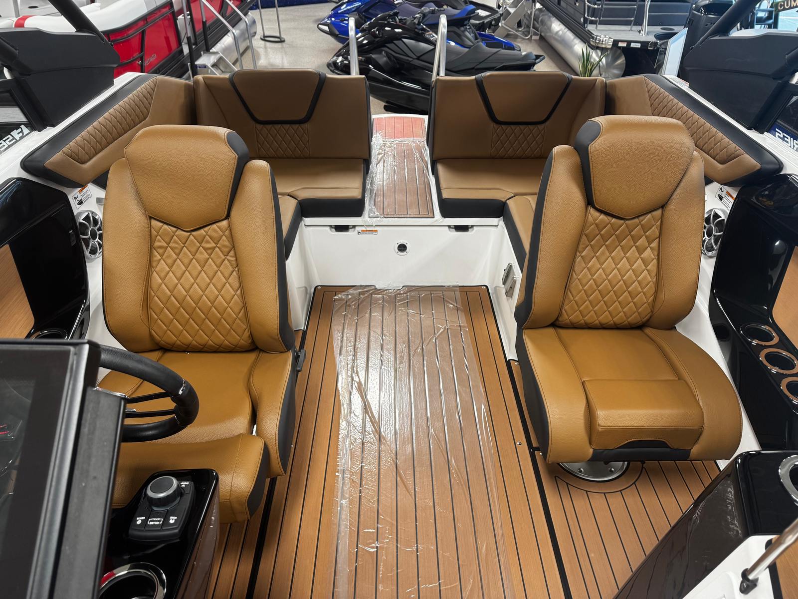 At the heart of the Yamaha 222 SE are two powerful engines, delivering a combined 400 horsepower. This dual-engine setup ensures exhilarating acceleration, responsive handling, and the kind of agility that only a jet boat can provide. The advanced jet propulsion system offers a smooth, quiet ride and exceptional maneuverability, making docking and navigating tight spaces a breeze. With this much horsepower at your fingertips, you’ll experience the thrill of instant power and the confidence to tackle a variety of water conditions. Whether you’re zipping across open water or carving tight turns, the Yamaha 222 SE’s performance is sure to impress even the most discerning boating enthusiasts.