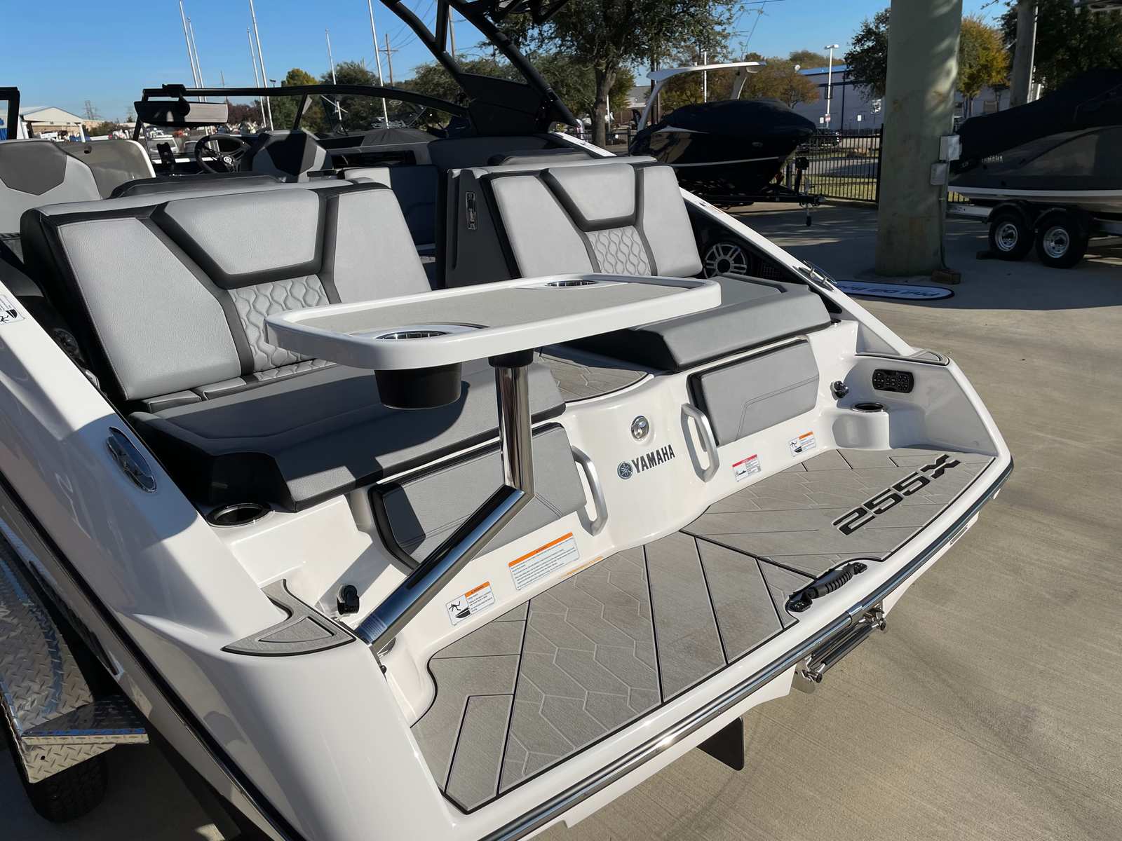 The 2026 Yamaha 255 XE jet boat is packed with advanced features and thoughtful details that enhance both performance and comfort. The spacious cockpit is designed for maximum usability, with ergonomic seating and intuitive controls that put everything you need within easy reach. The modern helm station offers clear visibility and precise control, making navigation a breeze even in challenging conditions.This Yamaha boat for sale also boasts a generous swim platform, perfect for easy access to the water and relaxing at anchor. The innovative design maximizes onboard space, providing plenty of room for lounging, entertaining, or gearing up for water sports. The high-quality construction and attention to detail are evident throughout, ensuring a premium boating experience that stands the test of time.