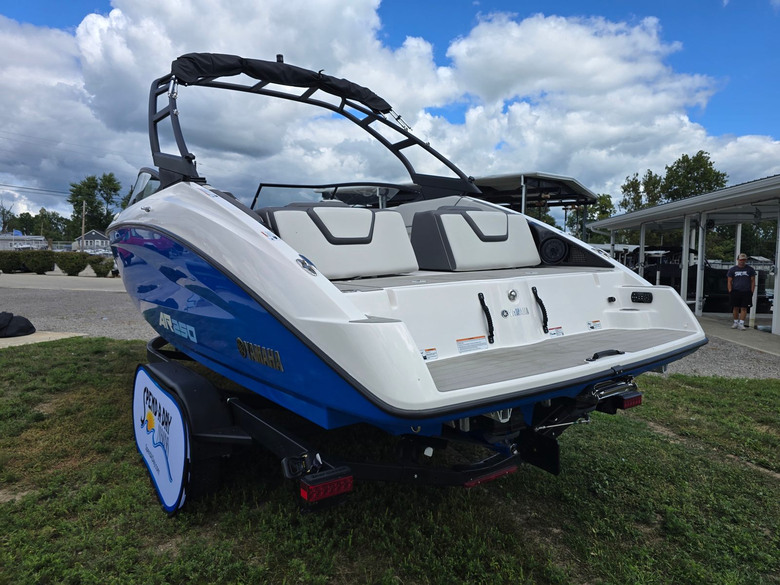 The 2025 Yamaha AR250 is a brand-new jet boat that measures an impressive 24.5 feet in length, offering ample space for friends, family, and all your favorite water activities. Yamaha’s reputation for innovation and reliability shines through in this model, ensuring you enjoy every moment on the water with confidence. The AR250’s sleek and sporty design is matched by its robust construction, making it as durable as it is eye-catching. With its spacious layout and modern aesthetics, this Yamaha boat for sale is perfect for those who demand both performance and comfort from their watercraft.
